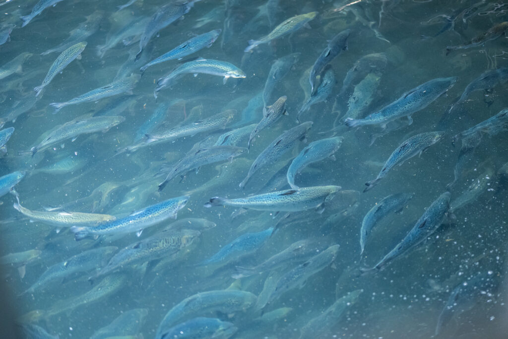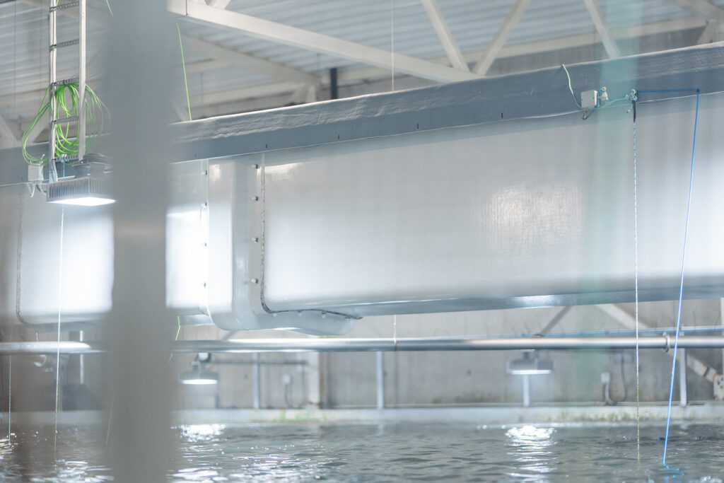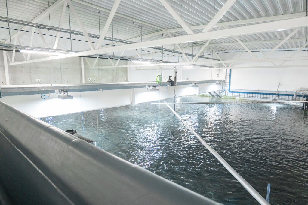 At the facility, post-smolt are kept in land-based fish tanks until they reach up to 1–1.5 kg before being transferred to sea sites. By keeping the fish longer in a controlled land-based environment, the farmer gains better control over environmental conditions and reduces risk in the sea phase.