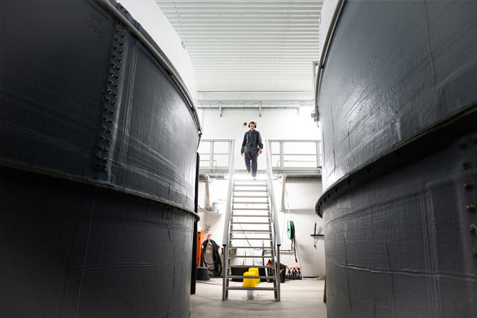 Composite offers an exceptional strength-to-weight ratio, enabling large diameters and heights. The same material principles used in offshore energy, subsea structures and aviation.